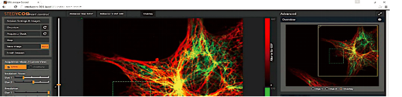 无论是新手用户还是专家用户只通过一个用户界面和三次点击即可获取一流STED超高分辨率图像,并且将不同荧光的超高分辨率图像于共聚焦图像完美整合到同一界面中,可实时对比STED和共聚焦成像。